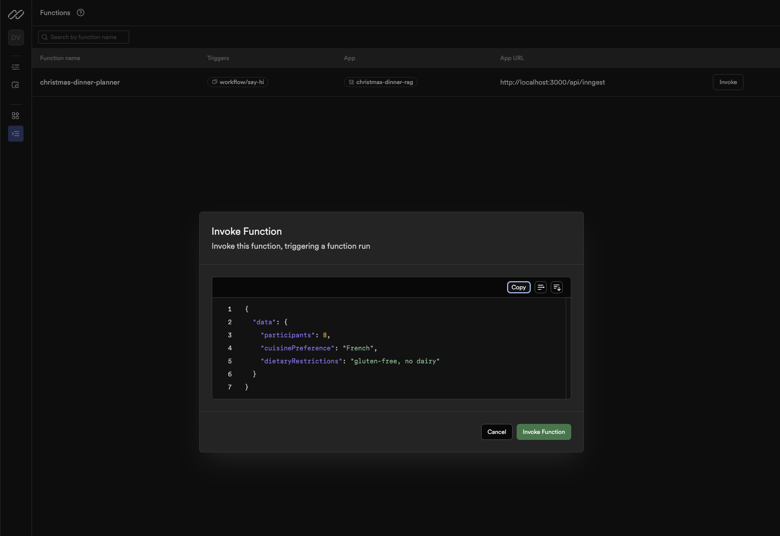 christmas-dinner-plannerworkflow - Click the "Invoke Function" button